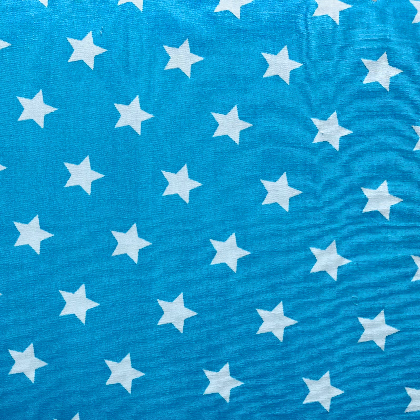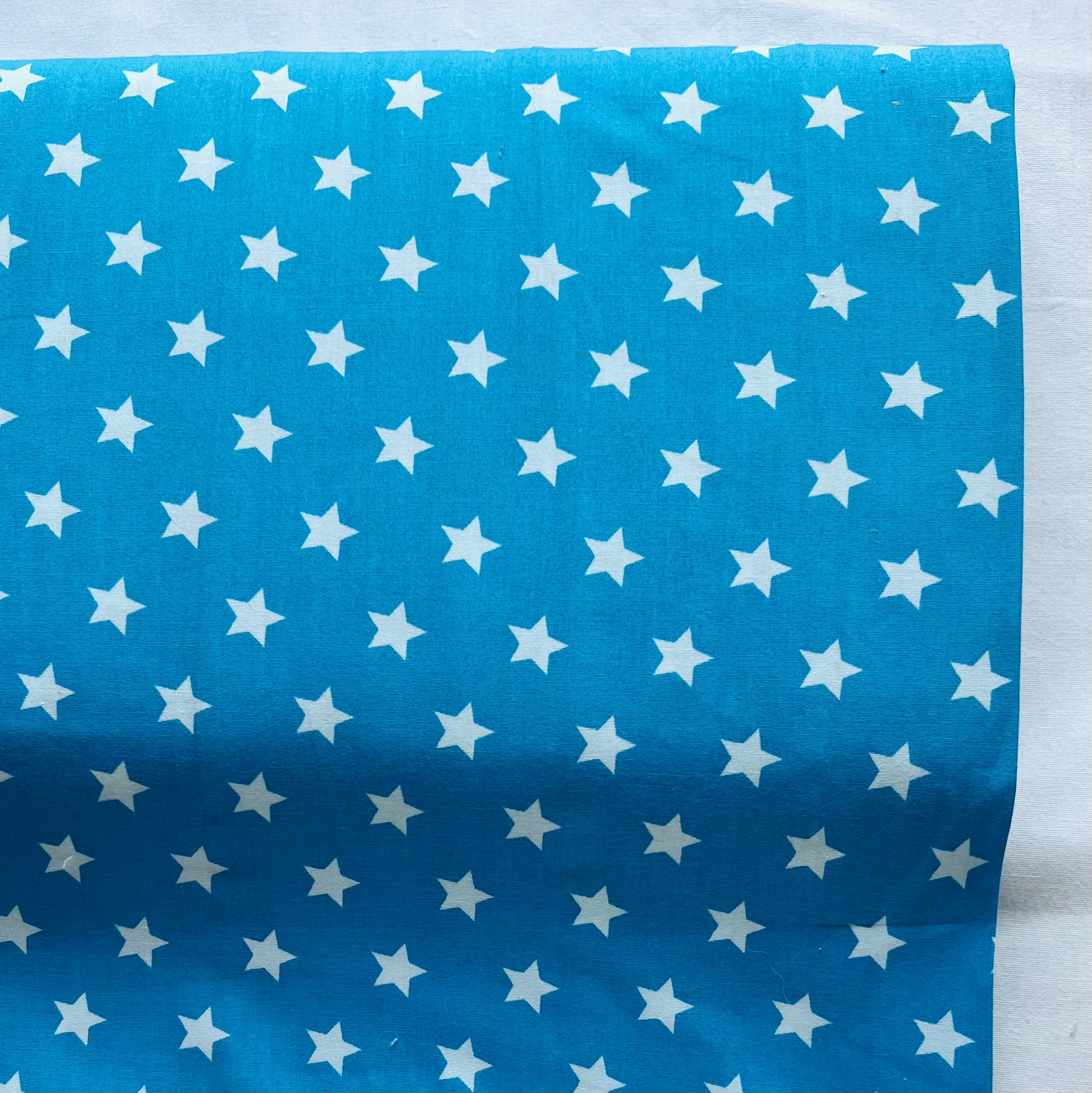 Baumwollstoff TÜRKIS mit WEISSEN STERNEN 15 mm, 140 cm breit, Sternenstoff