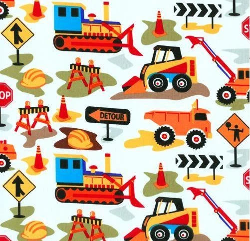 Ein hochwertiger Baumwollstoff mit liebevollem Motiv – ideal für kleine Baustellenfans.