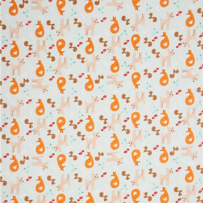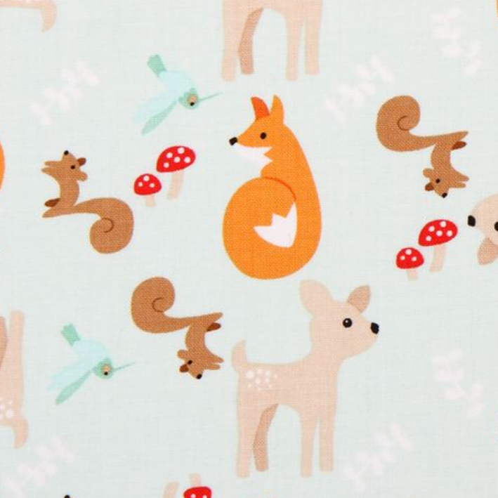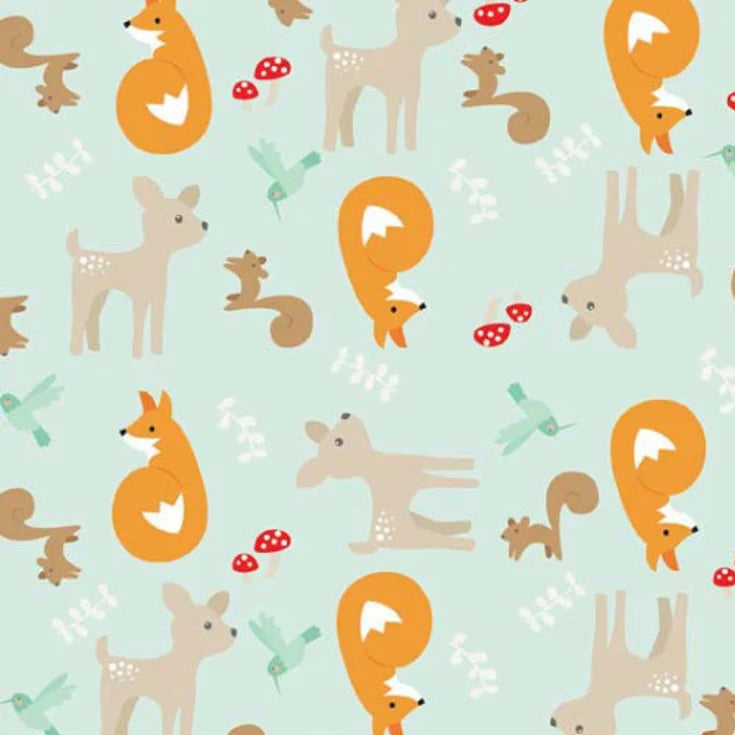 Riley Blake Baumwollstoff GOOD NATURED Main Mint - Naturmotive Waldbewohner in Mint Beige Orange