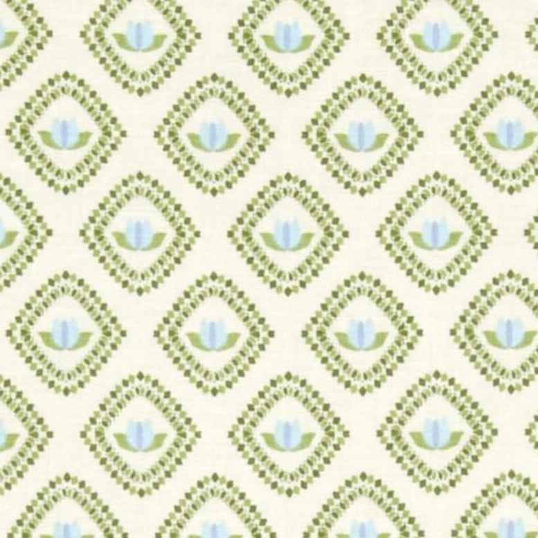 Riley Blake Baumwollstoff Floribella TULIP Cream – Geometrischer Tulpenstoff in Cremeweiß, Lindgrün & Hellblau
