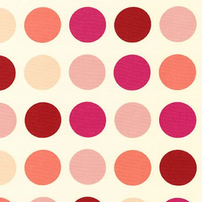 Der Sevenberry Dot Canvas von Robert Kaufman vereint natürliche Eleganz mit einem fröhlichen Farbakzent. Auf dem ungebleichten, naturfarbenen Hintergrund verteilen sich gleichmäßig 4cm große Punkte in Rosa-, Pink- und Fuchsia Tönen. Die sanfte, aber lebendige Farbpalette verleiht dem robusten Baumwollcanvas eine verspielte Leichtigkeit.