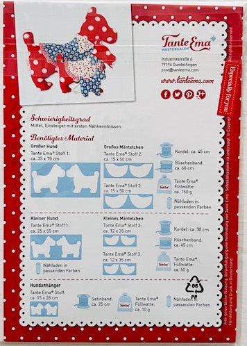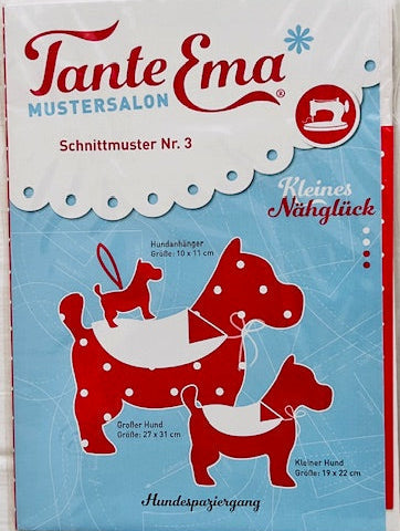 Tante Ema Schnittmuster - Kleines Nähglück Nr. 3: Hundespaziergang - Hund mit Mäntelchen in Groß, Klein und als Anhänger