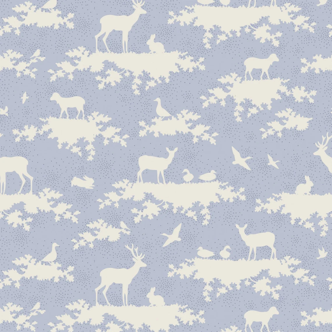 Tilda Baumwollstoff Forest Sweetheart Light Blue aus der Woodland-Kollektion Cremeweiß Hellblau Waldtiere