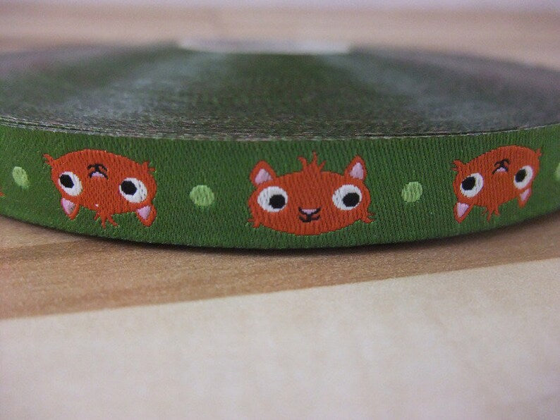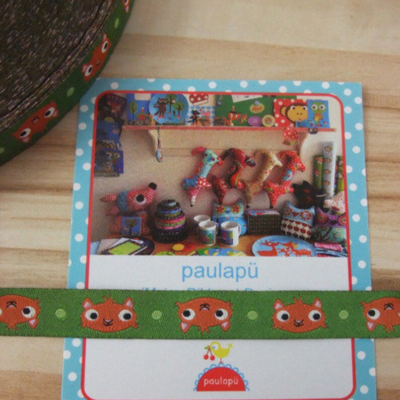 Charmant, verspielt und ein echter Hingucker: Das Webband Eichkatz von farbenmix zeigt das fröhliche Gesicht einer verschmitzten Eichkatze - mal kopfüber, mal aufrecht - immer unterbrochen von kleinen hellgrünen Punkten. Der moosgrüne Hintergrund rundet das naturverliebte Design harmonisch ab. Ideal zum Verzieren von Kleidung, Accessoires, Taschen oder Kinderprojekten.