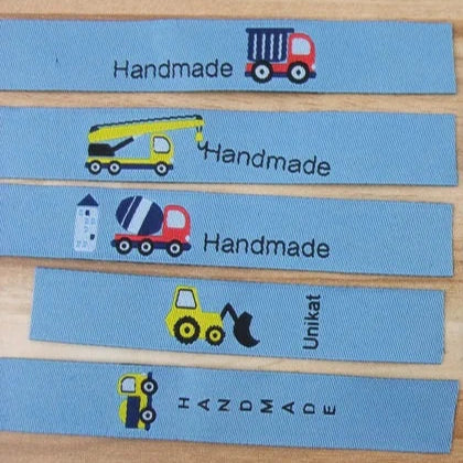 Webband HANDMADE Label Etiketten Bagger Baustelle in Blau von blaubeerstern