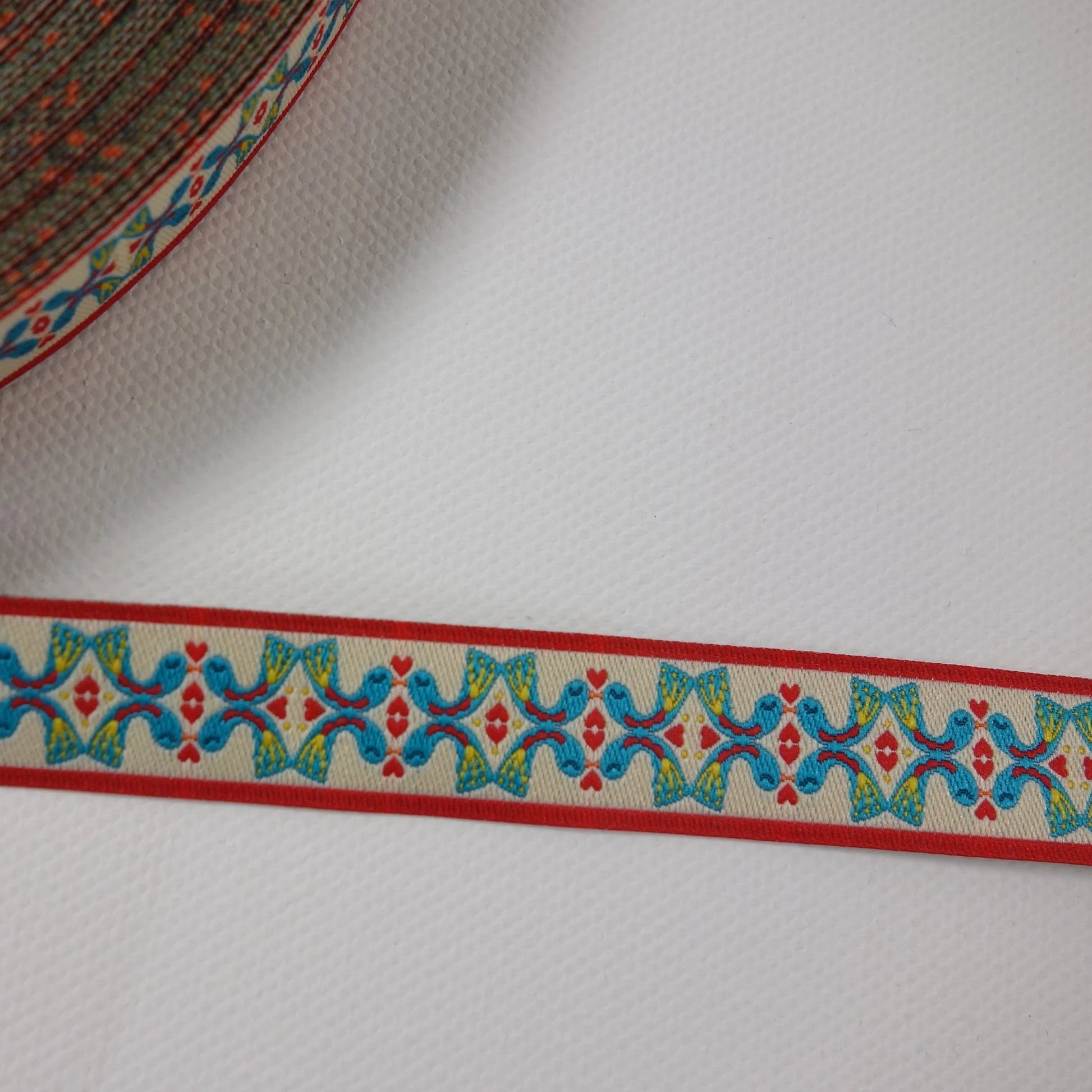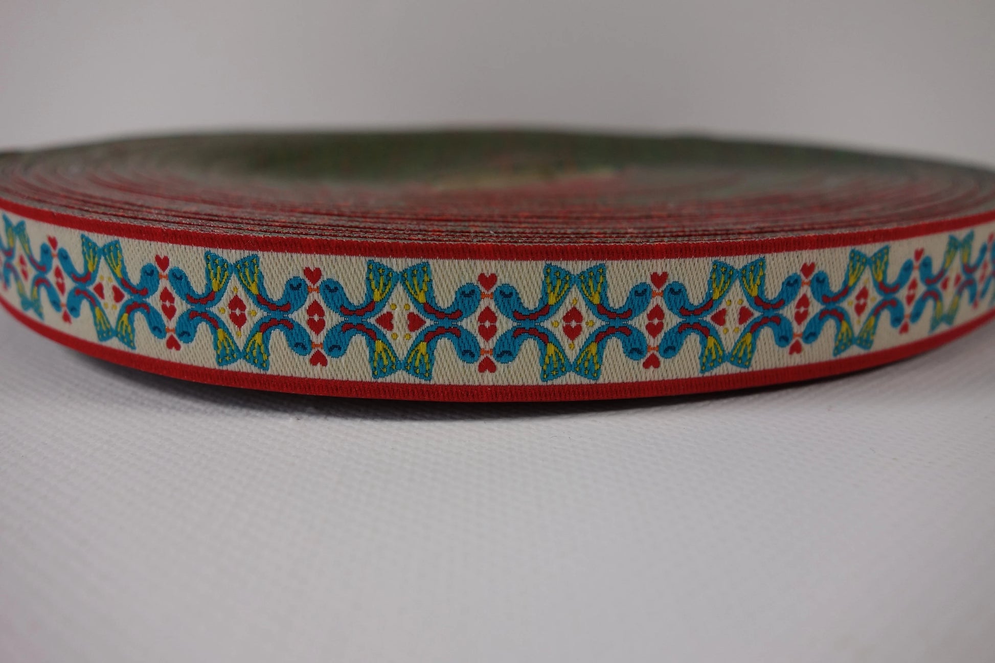 Dieses liebevoll gestaltete Webband KissingBirds von Jolijou verzaubert mit kleinen, sich zuneigenden Vögelchen im Folklore-Stil. Die fröhlichen Farben und detailreichen Ornamente machen das Band zu Hingucker an Taschen, Kleidung, Deko oder Geschenkverpackungen.