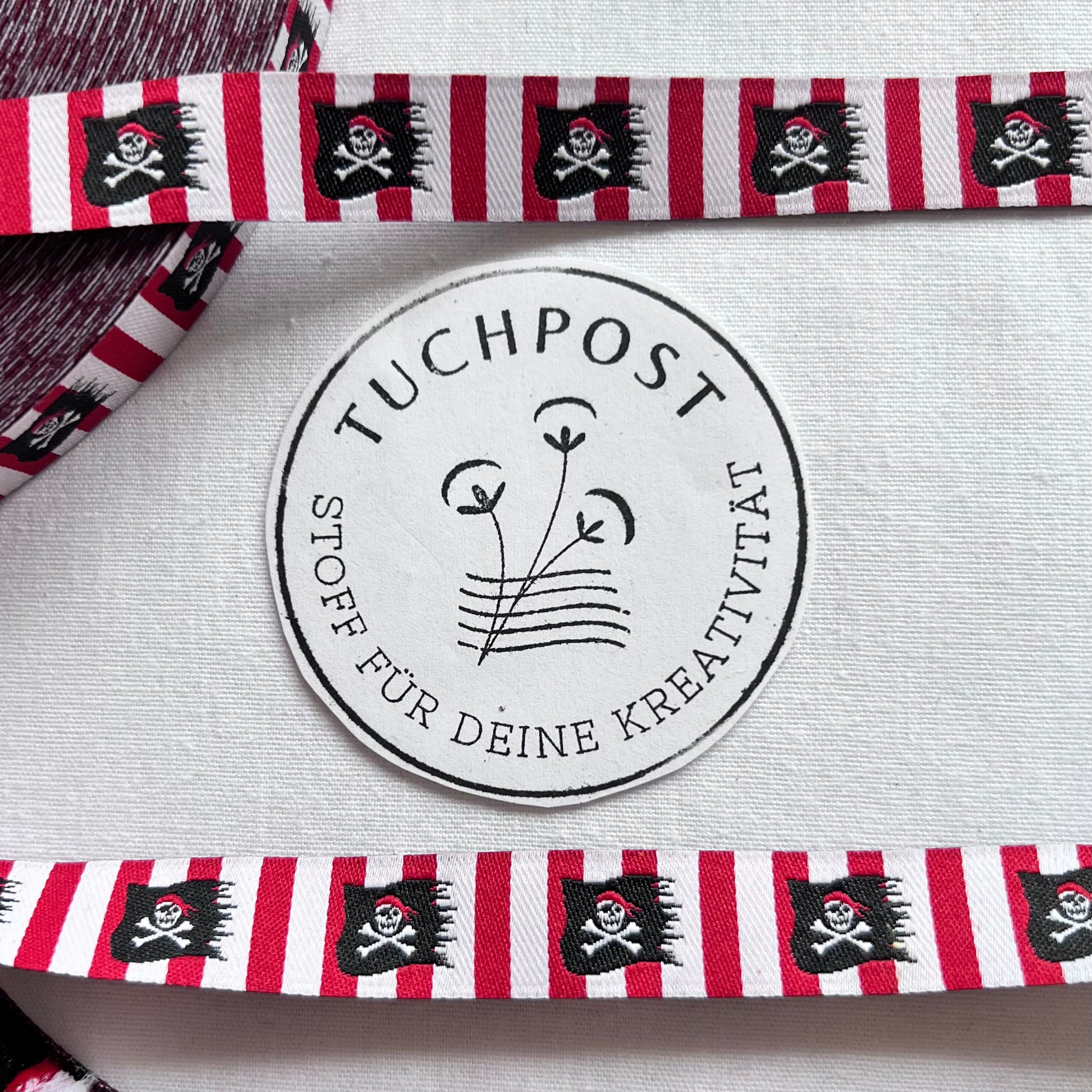 Webband Serukid PIRAT Piratenflagge Rot Weiß Schwarz 15mm