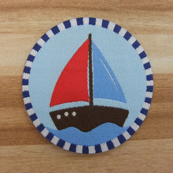 Webetikett Patch Aufbügler SEGELBOOT rund 44mm zum Aufbügeln oder Aufnähen von Casa Di Falcone
