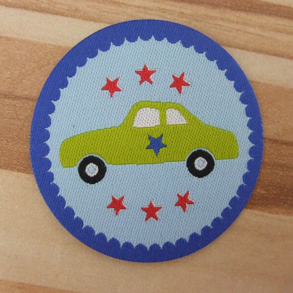 Webetikett Patch Aufbügler AUTO grün/blau rund 44mm zum Aufbügeln oder Aufnähen von Casa Di Falcone