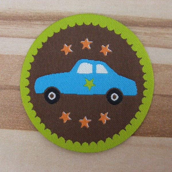 Webetikett Patch Aufbügler AUTO türkis/braun rund 44mm zum Aufbügeln oder Aufnähen von Casa Di Falcone